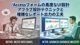 こういった細かい手法や技術は、現場での実践を通じて身に付けることが一番です。しかし、Accessの可能性は無限大。排他制御やデータベース分割など、高度な技術をうまく使いこなすことで、ユーザーエクスペリエンスを大幅に向上できます。